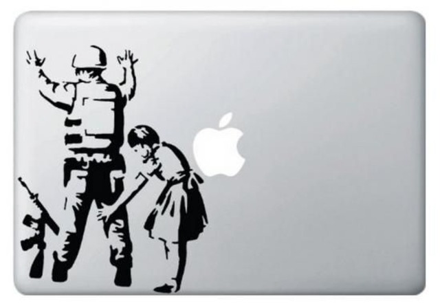 WOLFING 全サイズ対応 MacBook ステッカー アートステッカー スキンシール MacBook 対応 アートステッカー Banksy バンクシー デザイン 兵士と少女 ブラック