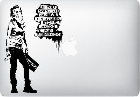 WOLFING MacBook ステッカー アートステッカー Banksy バンクシー Achieve Greatness ブラック