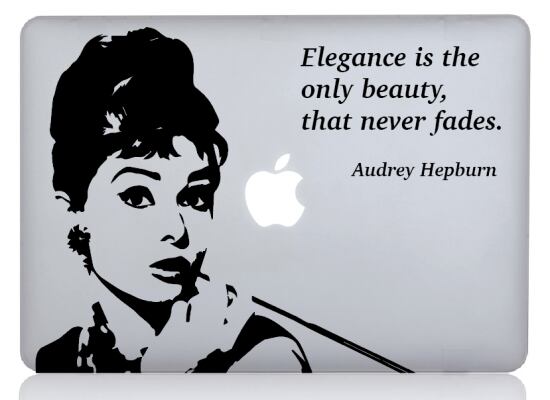 WOLFING 全サイズ対応 MacBook ステッカー アートステッカー Audrey Hepburn オードリー ヘップバーン Elegance エレガンス ブラック