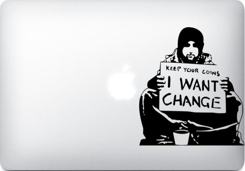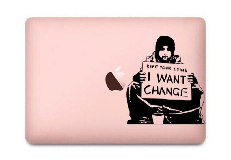 WOLFING 全サイズ対応 MacBook ステッカー アートステッカー スキンシール Banksy バンクシー I want change ブラック
