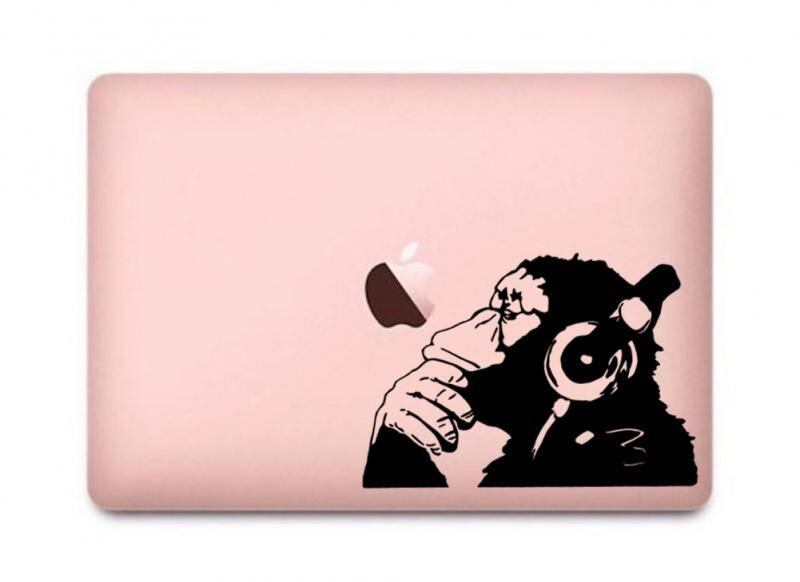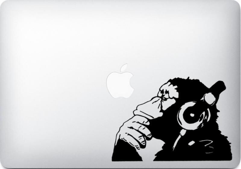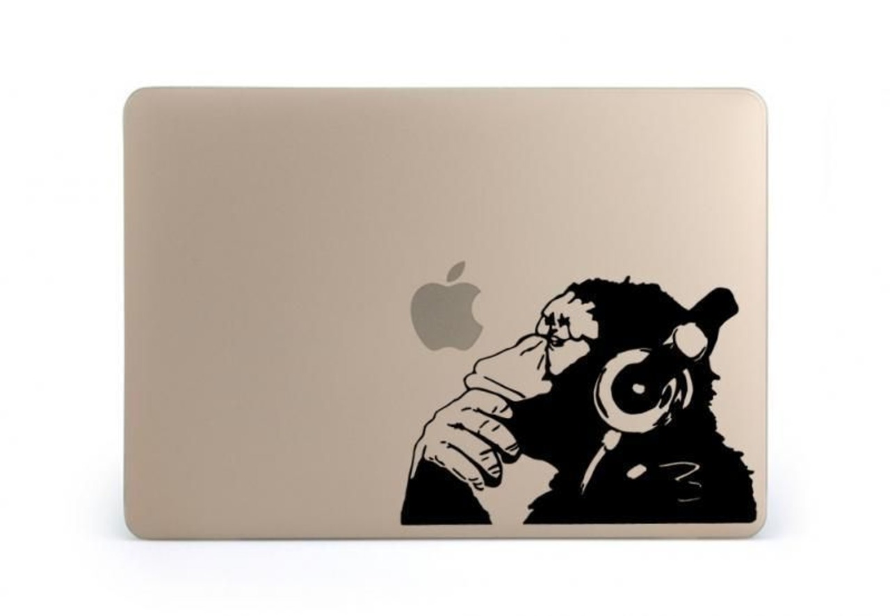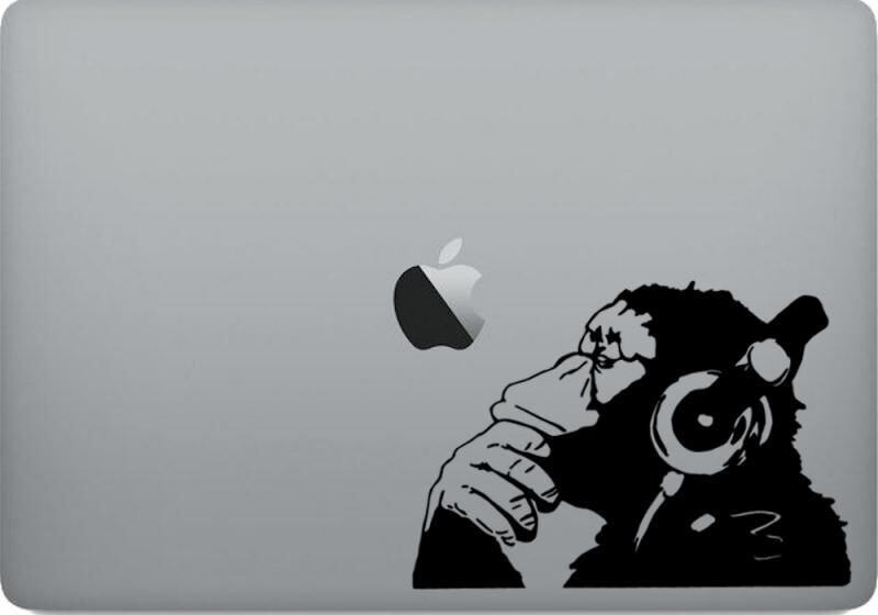 WOLFING 全サイズ対応 MacBook ステッカー アートステッカー スキンシール Banksy バンクシー Monkeyl with Headphone ブラック