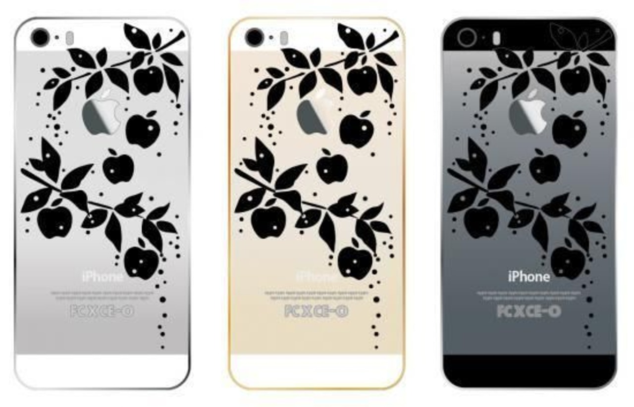 貼って剥がせるiPhone 対応 アートステッカー 雨雫のりんご スタイリッシュな黒